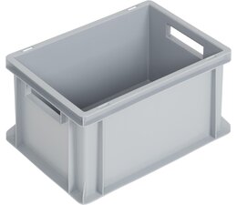 poids 1360 gr, volume 18,6 l, couleur gris, Charge 20 kg, capacité de gerbage 600 kg. Tous les prix sont nets. TVA et frais de transport exclus. Commandes supérieures 500 € € livraison gratuite.